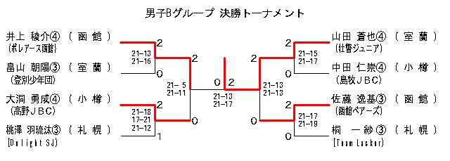 | BB-3 | ‘s•ËJr.[Žº—–] | ŽR“c‘“–ç‡C | ‚Q | 21-15:21-17 | ‚O | ’†“cm’‡C | “‡–q‚i‚a‚b[¬’M] | |